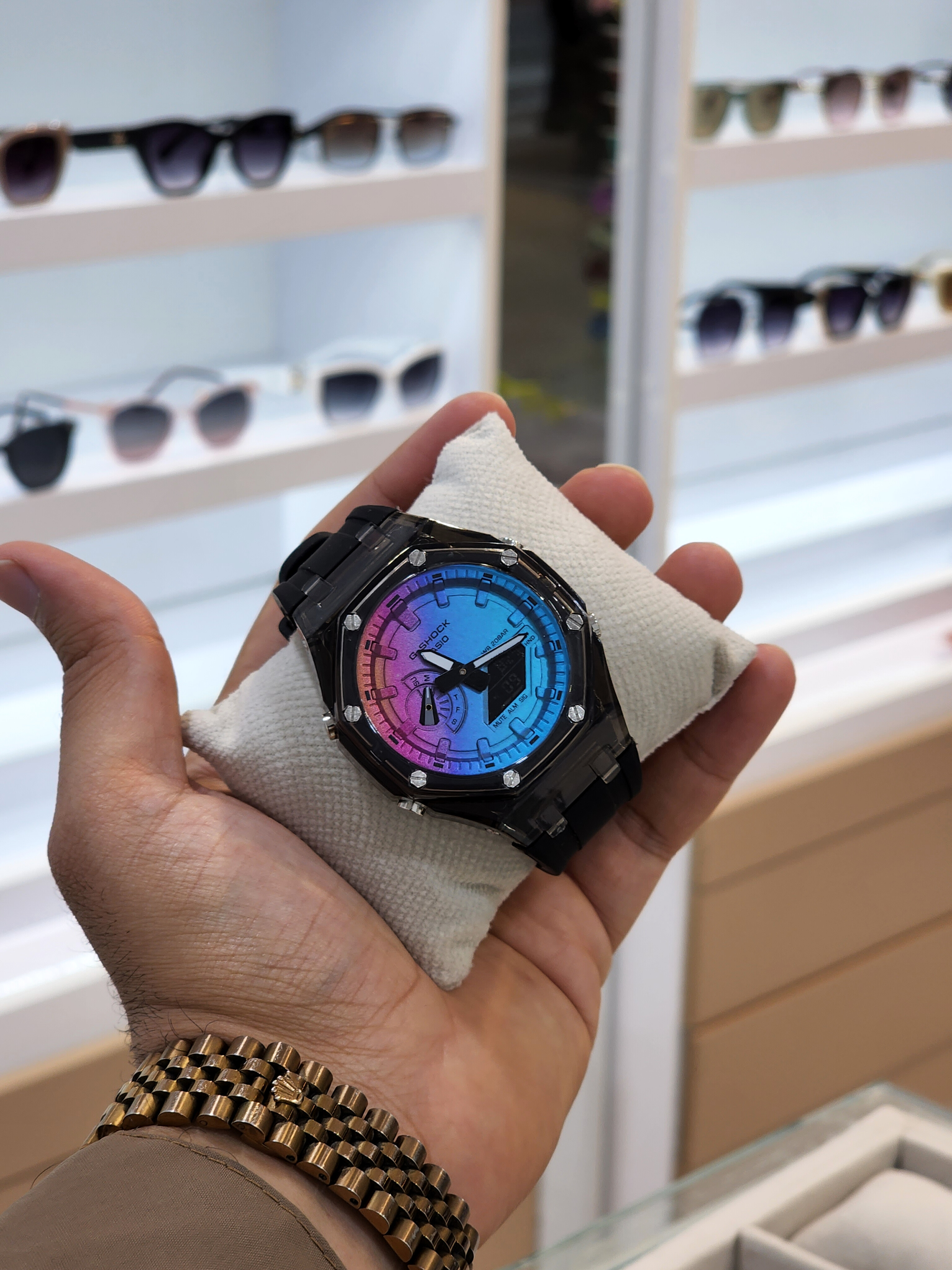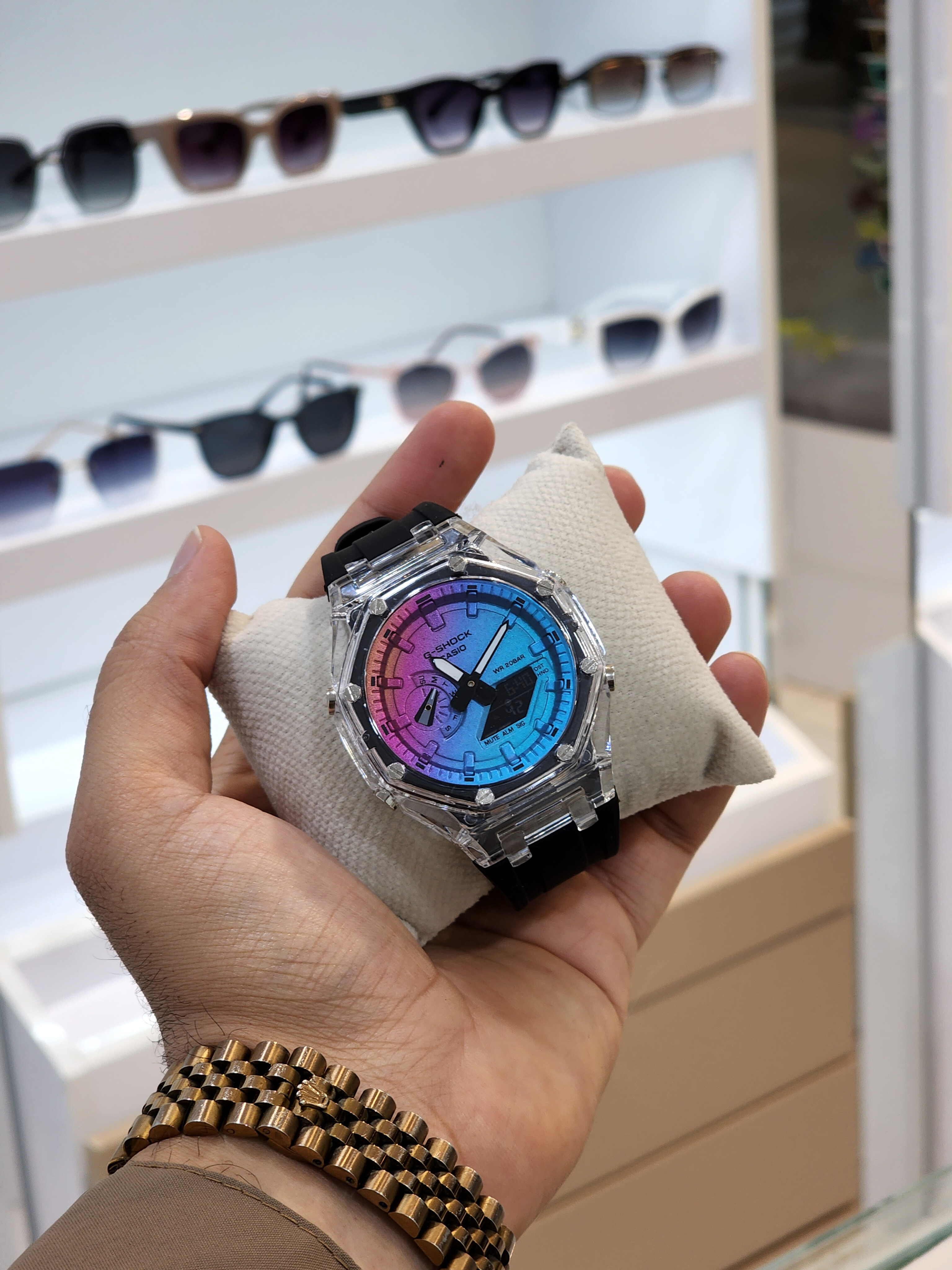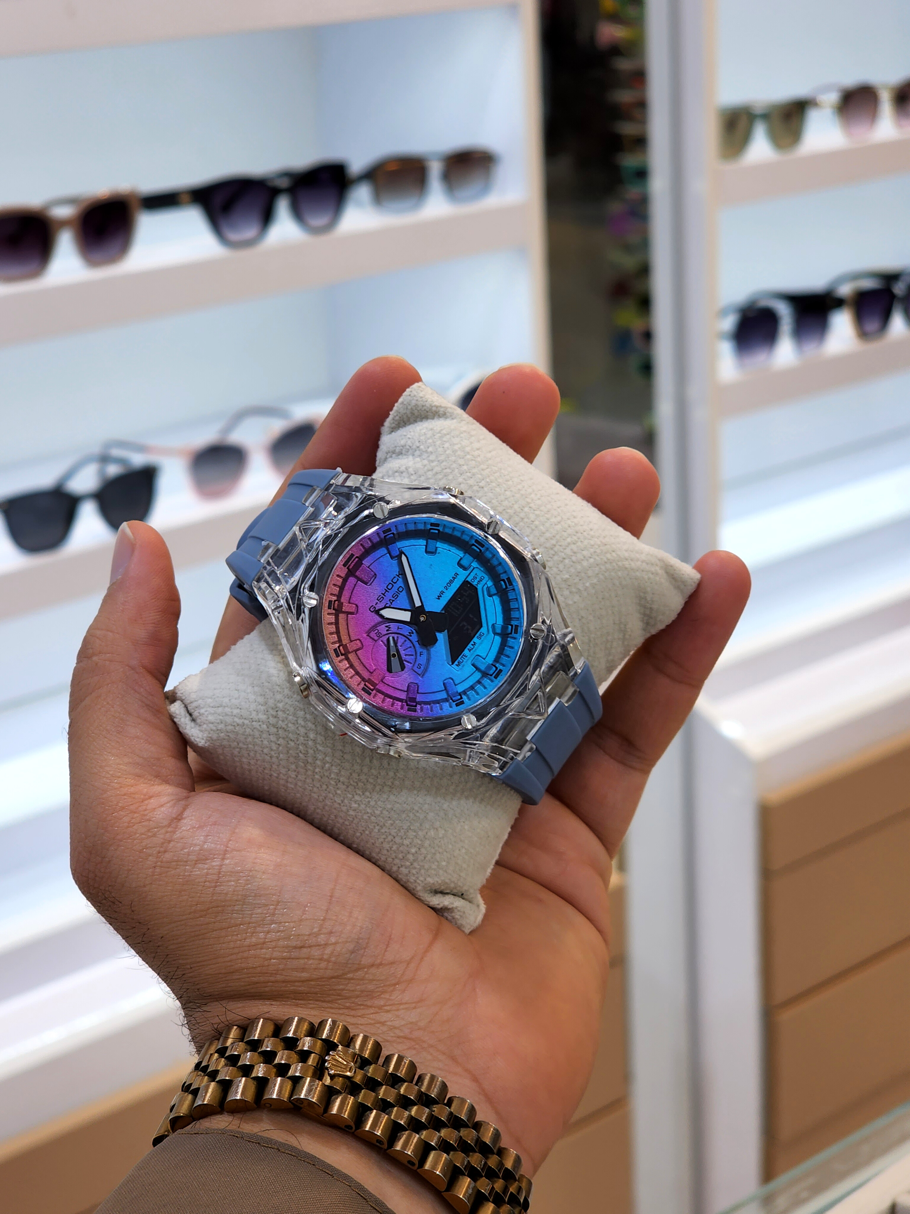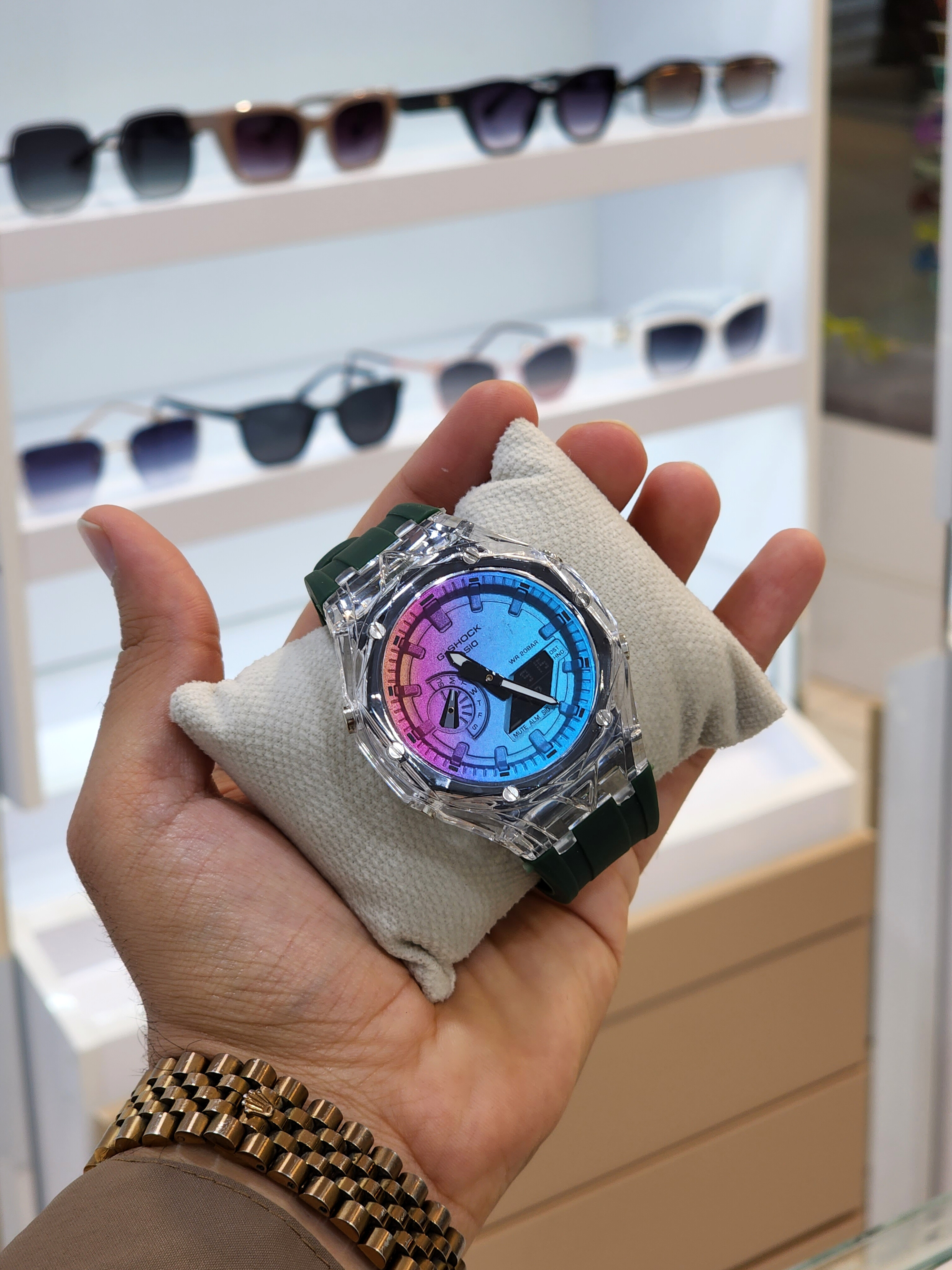 / آبی فسفری / آبی / مشکی / بند سبز / بند مشکی قاب کریستالی